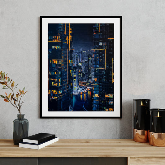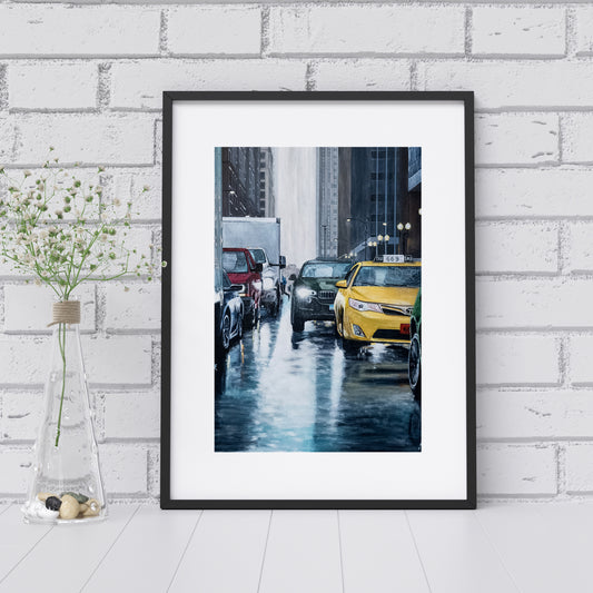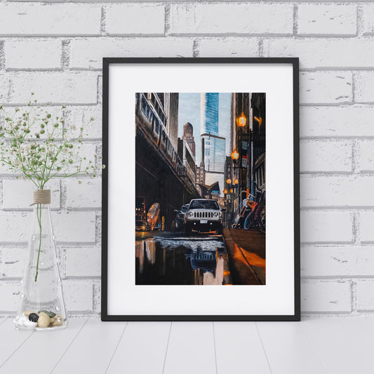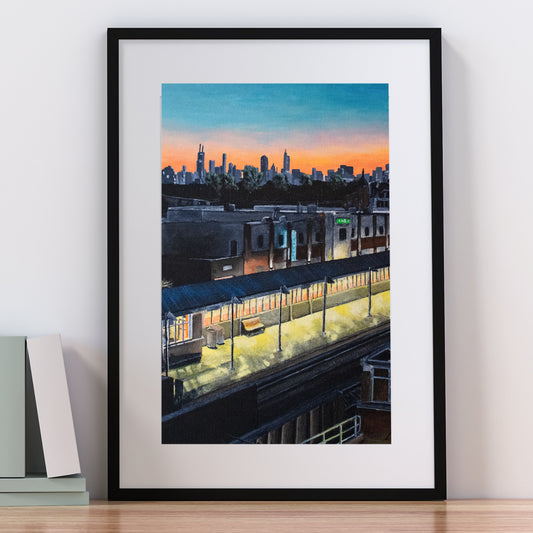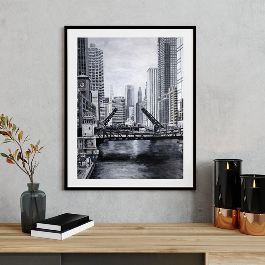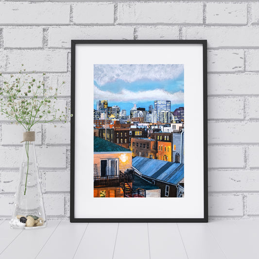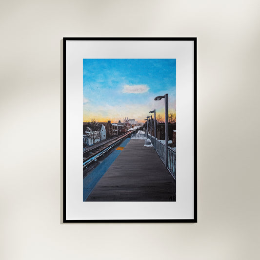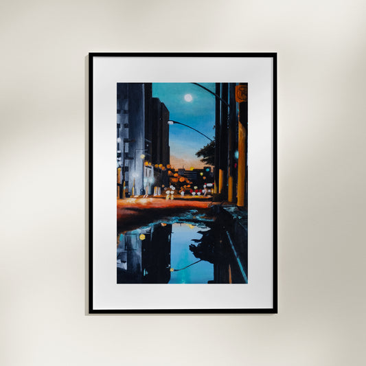 Archival-quality giclée prints on heavyweight fine art paper with a subtle matte texture. Available in two sizes, unframed or framed in black or white.