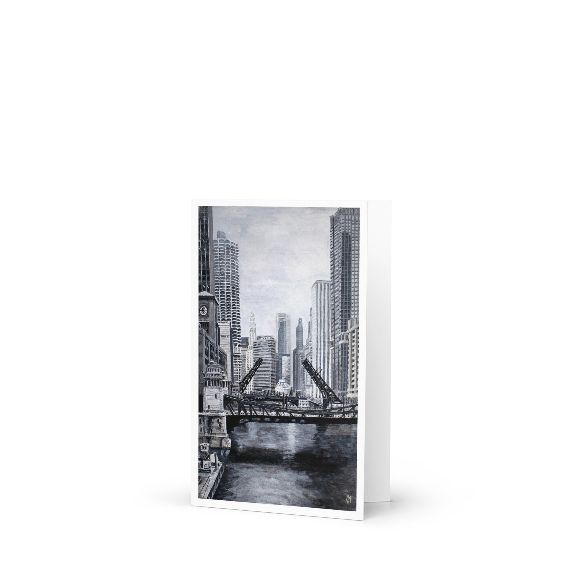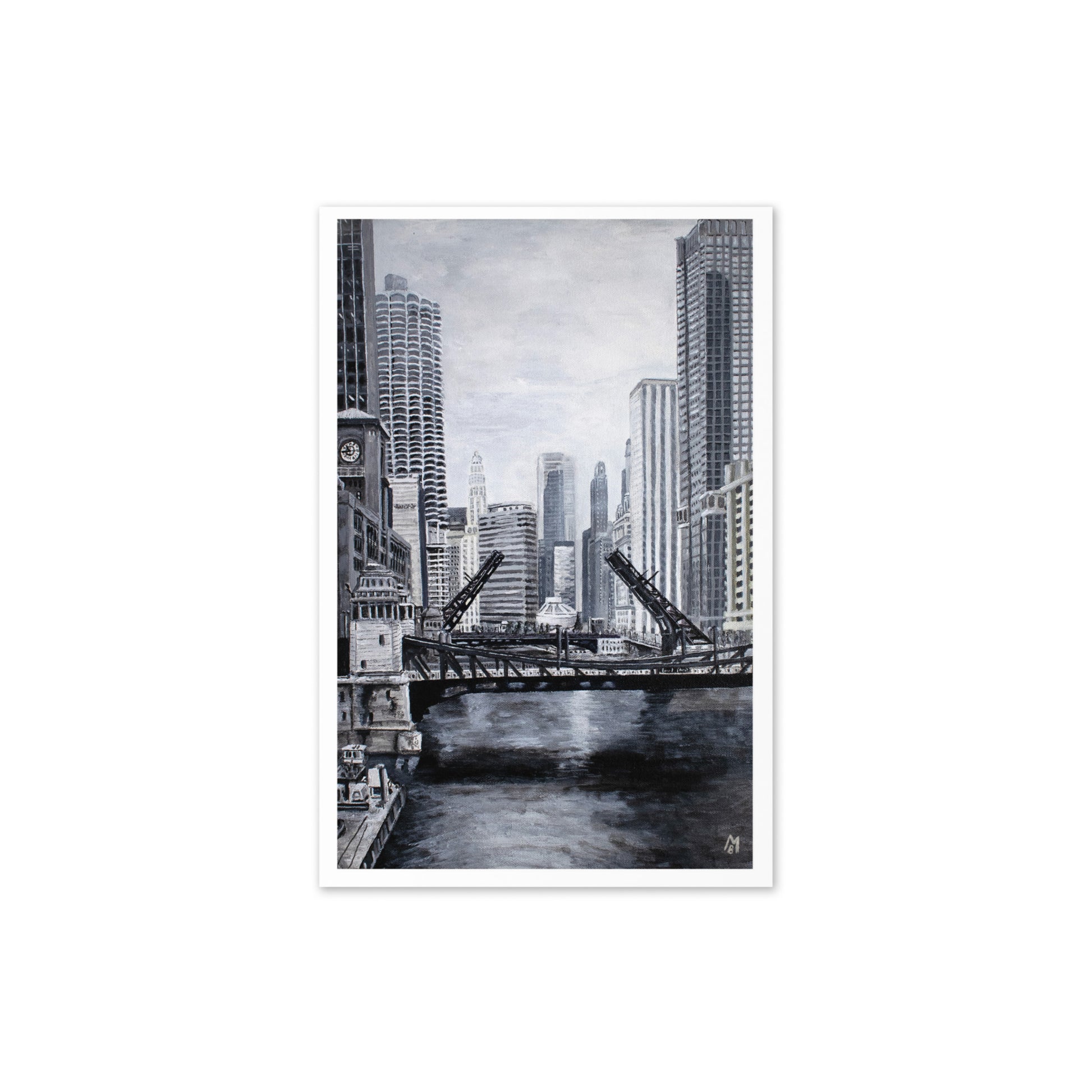 The iconic Chicago downtown river bridges come alive in striking monochrome, capturing the city's architectural beauty without needing a splash of color.