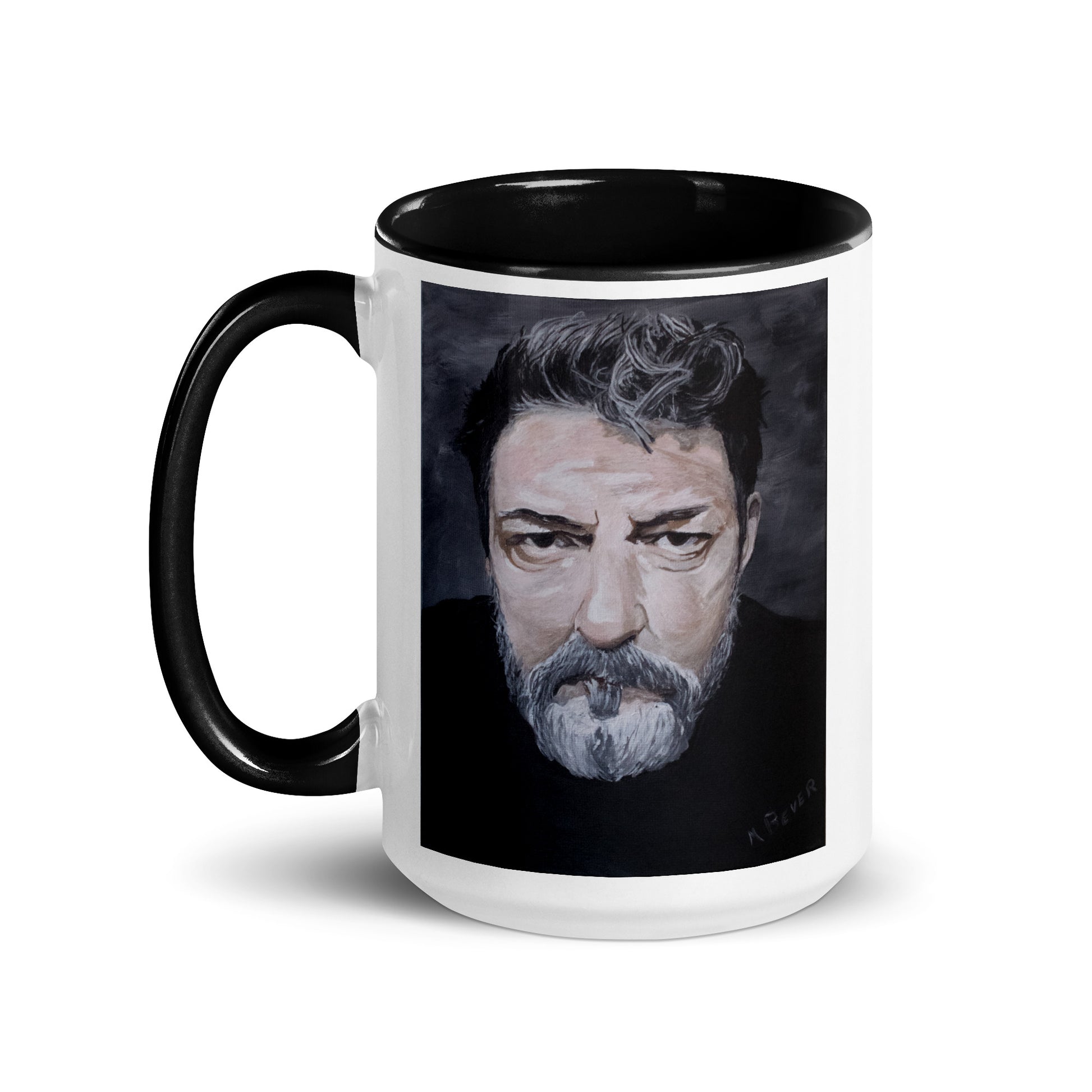 Wake up with me every morning with my mug on a mug! These ceramic mugs are adorned with an image of a self portrait original painting by artist Michael Bever titled and are accented with a colorful rim, handle, and inside, so the mug is bound to spice up your mug rack.