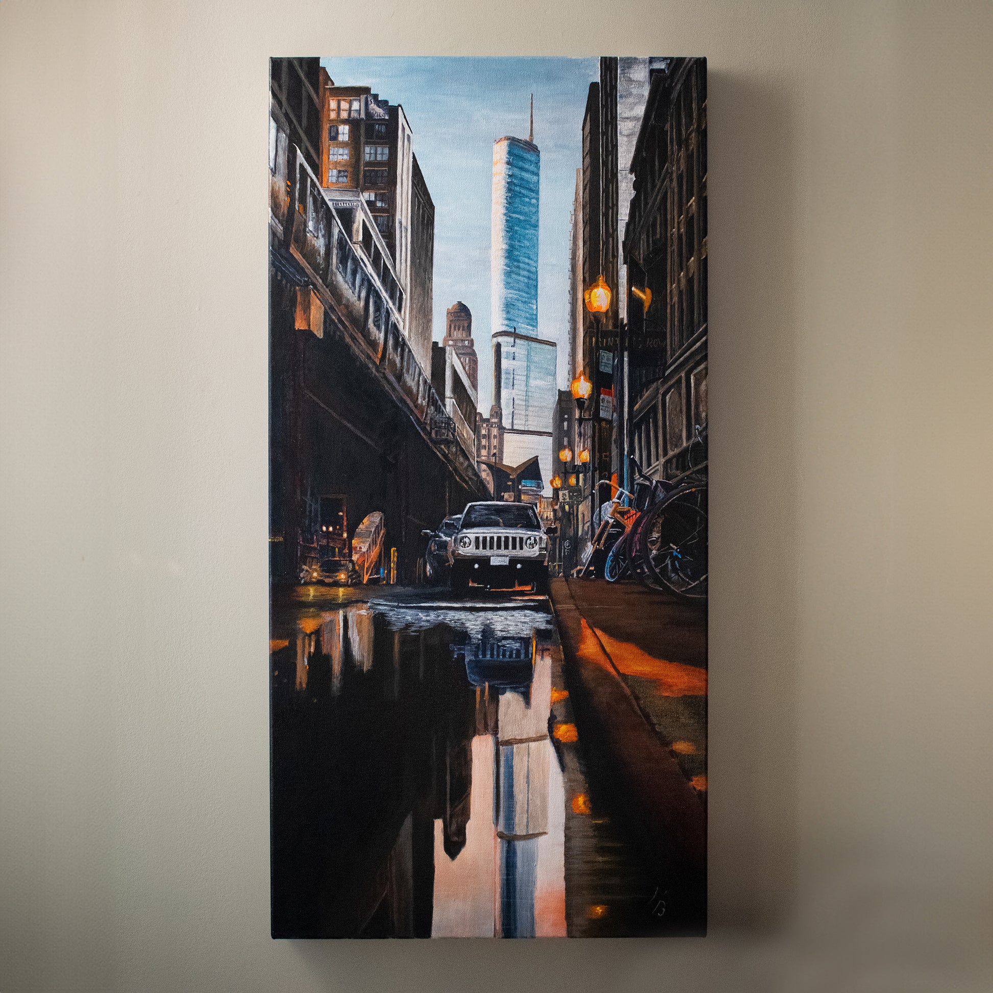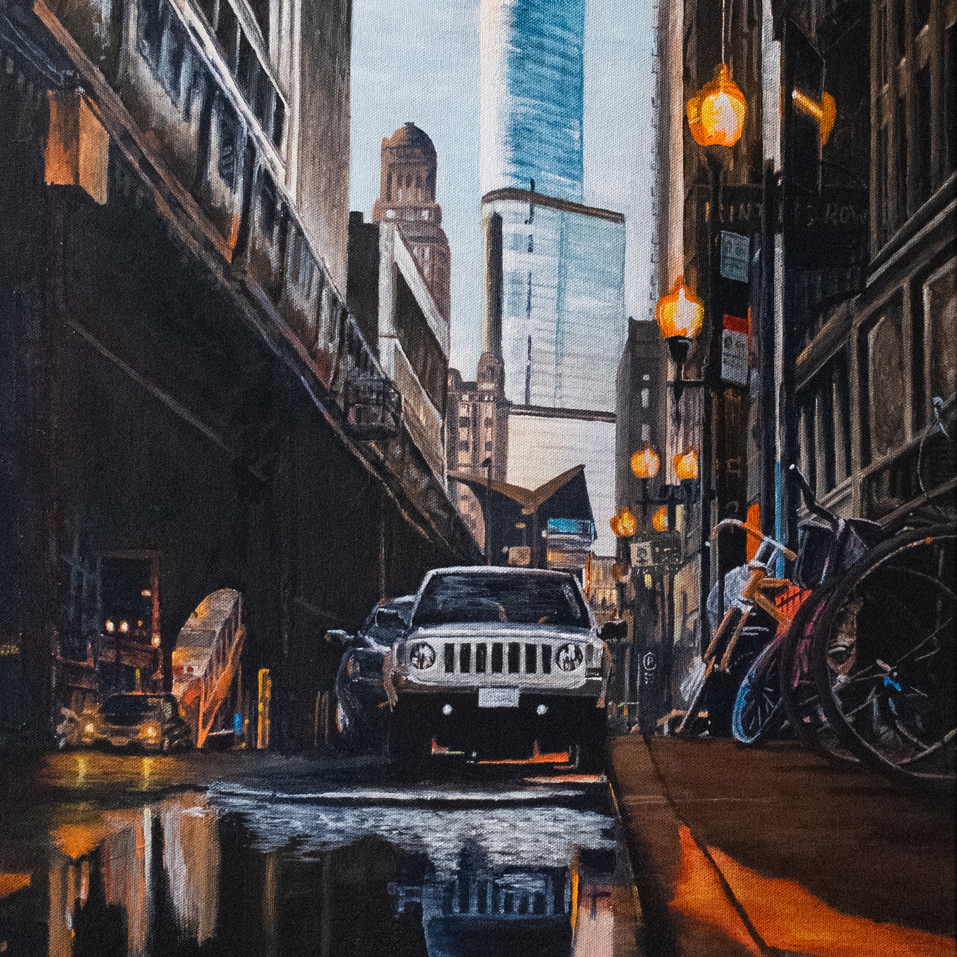 After a heavy rain, downtown Chicago transforms into something magical. Michael captures that moment when wet streets become mirrors, reflecting the towering architecture, glowing street lamps, and urban energy above. It's the kind of scene that makes you appreciate how rain can turn an ordinary city street into an extraordinary work of art.