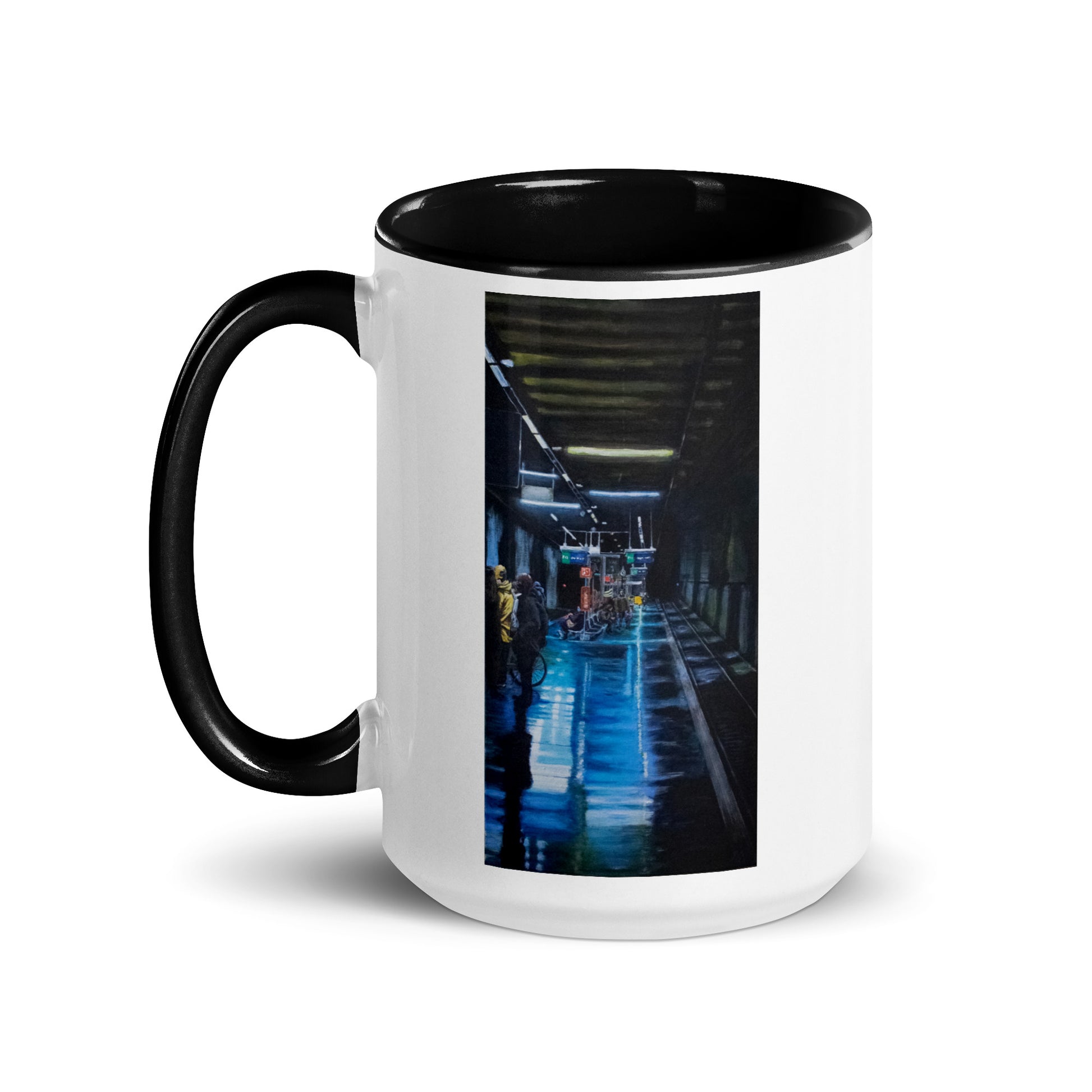Add a splash of color to your morning coffee or tea ritual! These ceramic mugs are adorned with an image of the original painting by artist Michael Bever titled "Underground" and are accented with a colorful rim, handle, and inside, so the mug is bound to spice up your mug rack.